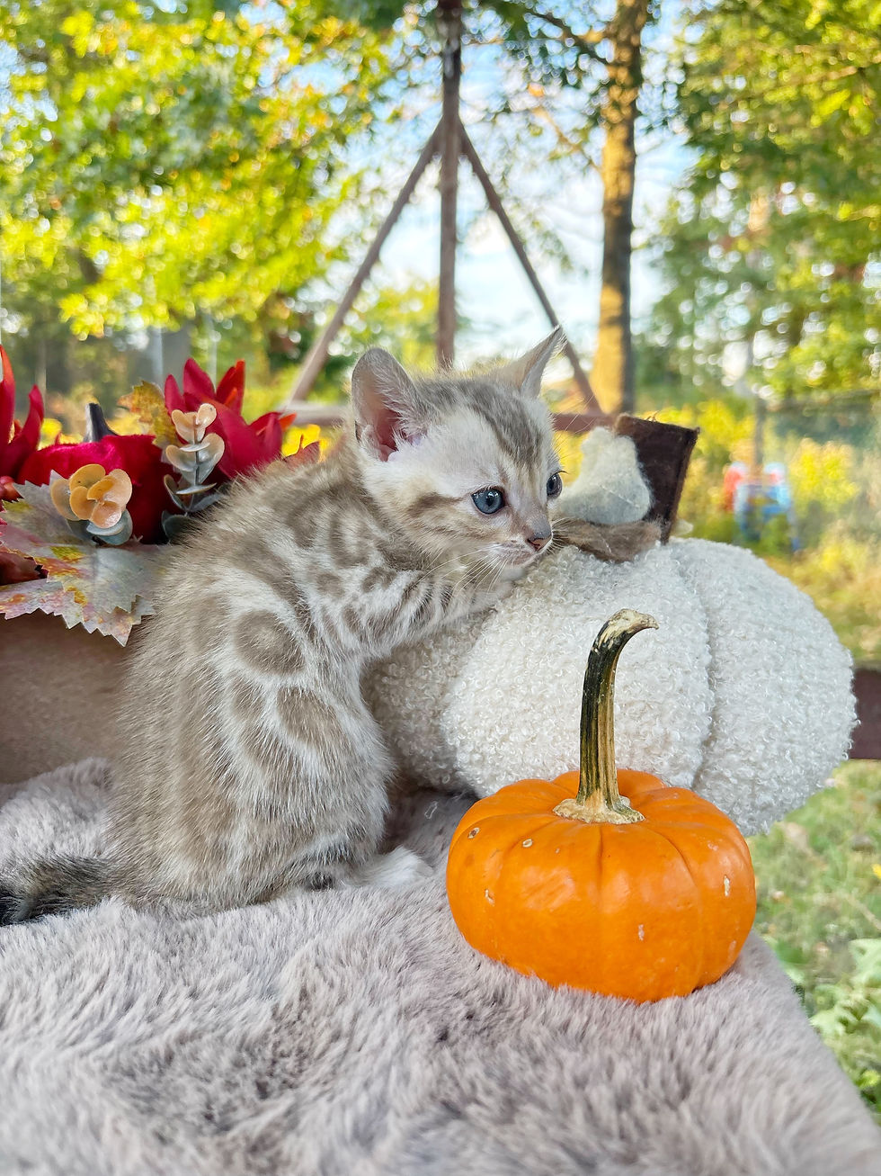 Adonis is our current Silver mink stud. He has giant chain clouded rosettes, and has been evolving our cattery's quality to the next level! He has extremely plush pelt and gorgeous aqua eyes. With him i can produce seal lynx, seal mink and seal sepia and blues. Because Adonis is a silver mink, we have the possibility of silvers and silver snows even when paired to a brown female. As well as passing along the glittered gene with this handsome guy!